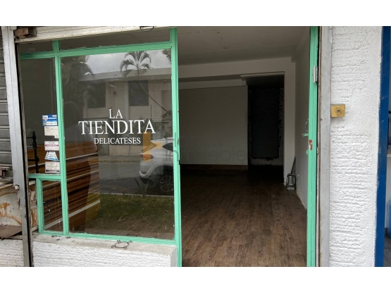 Fachada y Acceso: Amplia vitrina de vidrio con marcos en color verde agua que ofrece excelente exposición visual. Dispone de una puerta principal de vidrio y una santamaría metálica de seguridad.
